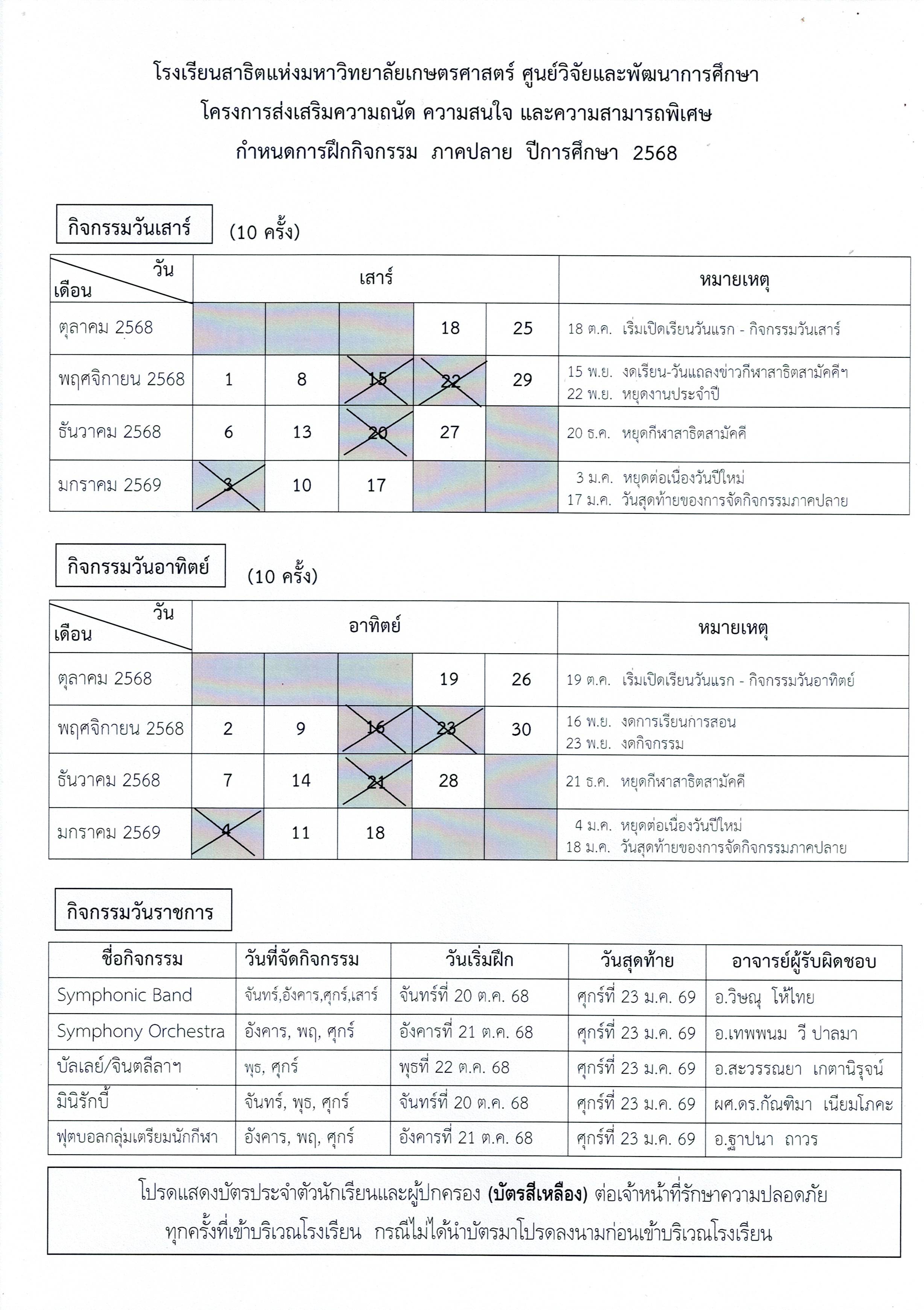 ตารางการเรียนการสอน