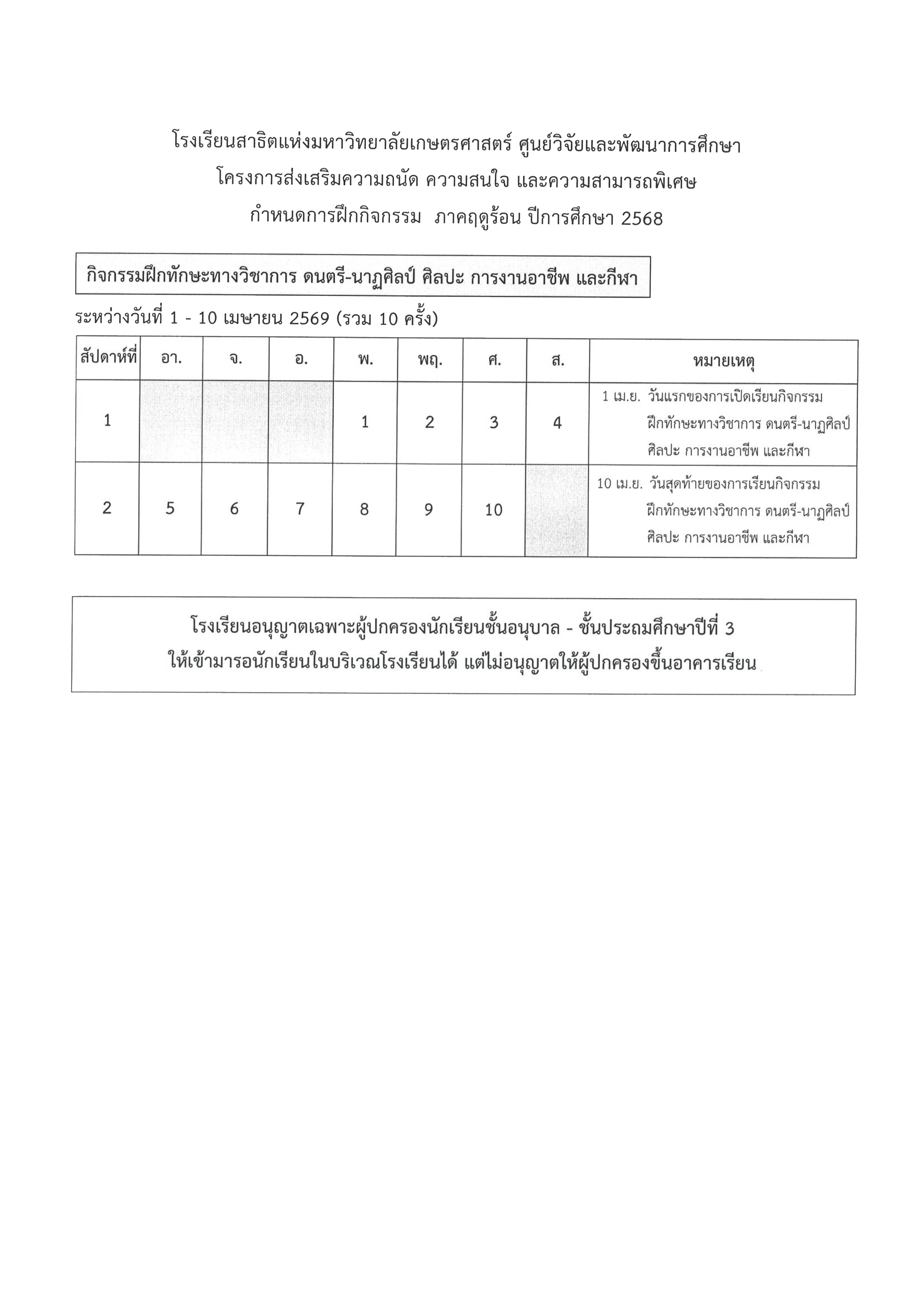 โครงการส่งเสริมความถนัด ความสนใจ และความสามารถพิเศษ