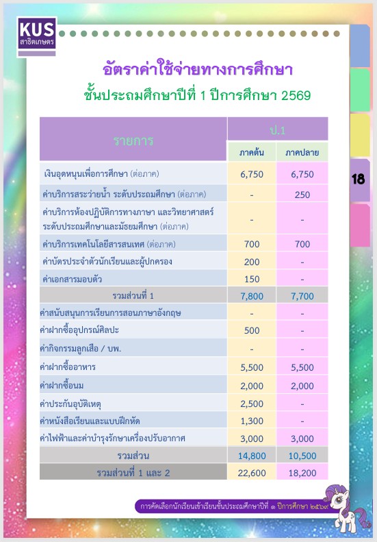 อัตราค่าใช้จ่ายทางการศึกษาชั้นประถมศึกษาปีที่ 1
