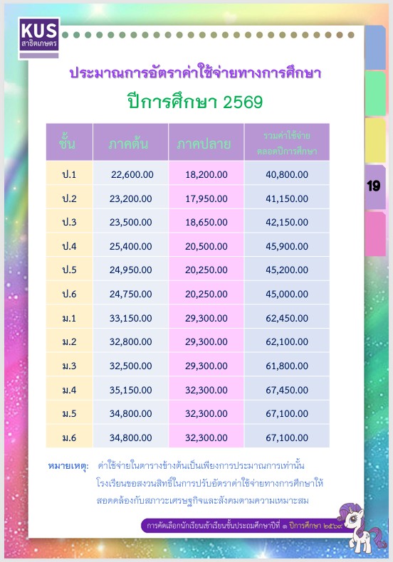 ประมาณการอัตราค่าใช้จ่ายทางการศึกษา ป.1-ม.6